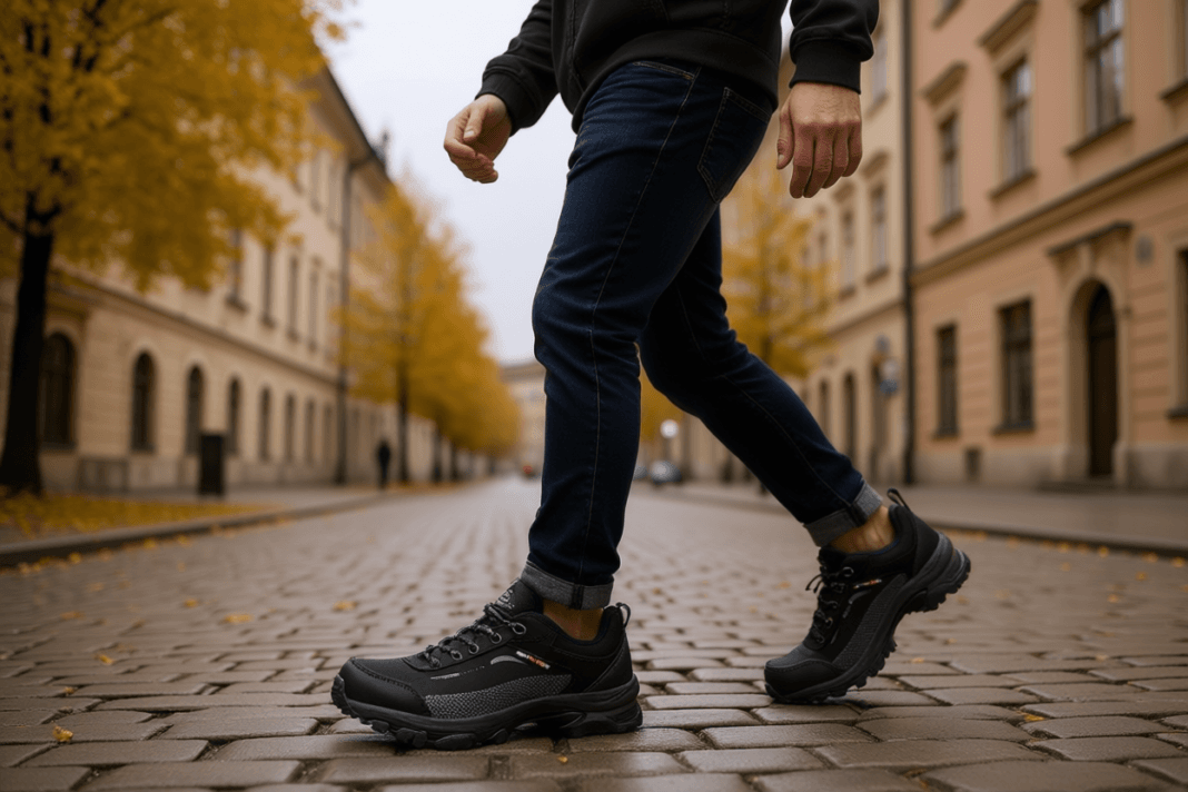 Jesienne chodniki to nie górski szlak, ale także mają swoje wyzwania. Podstawową zaletą butów trekkingowych jest dobra przyczepność do podłoża. Z kolei głęboki i wyraźny bieżnik na podeszwie zapewnia stabilność na wilgotnych nawierzchniach i dywanach mokrych liści, gdzie zwykłe sneakersy mogą się ślizgać.